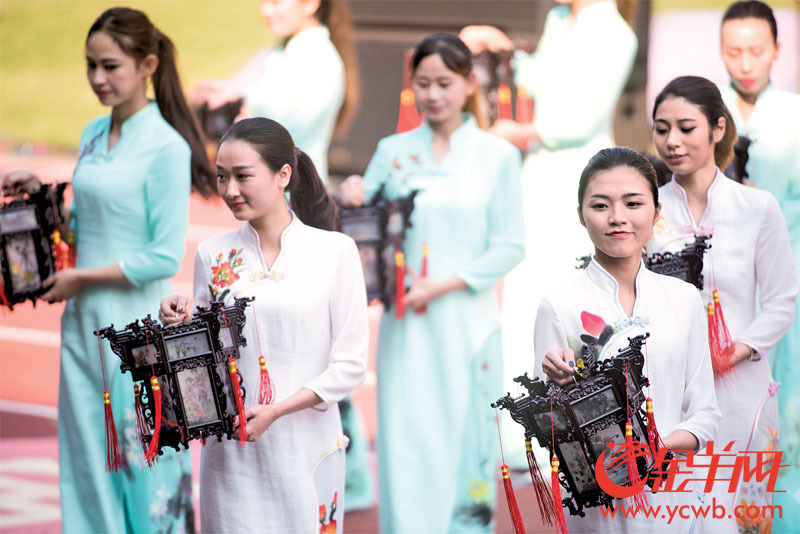 昨日廣府廟會的一景。這種打扮與所持宮燈式樣,明顯是現(xiàn)代導(dǎo)演對傳統(tǒng)的發(fā)展與模仿,但也可能形成新的民俗 記者 周巍 攝