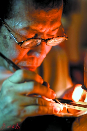 燙金絲印、公章膠印、原子印章……在和平西路9號有一家毫不起眼的刻章店——秋記刻章工藝,這里記錄著一段百年三代人的篆刻家族史。19世紀末期,叔公項信南隨著戲班來到廣州,成為一位金石篆刻名家;20世紀初,幼年喪父的項少南來到省城投奔叔叔項信南,也成為知名篆刻藝人,直到90歲高齡仍篆刻不輟;上世紀60年代,項少南之子項頌秋子承父業(yè),如今已入行57年。如今,隨著機器刻章的興起,從秋哥變成秋叔的71歲項頌秋卻面臨著手藝失傳。“如果有毅力的人想學,我愿意免費教學。”他說。