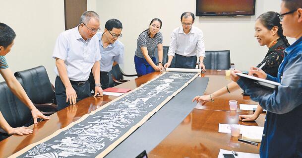 現(xiàn)場(chǎng)展示剪紙藝術(shù)作品《深圳上河圖》(局部)。