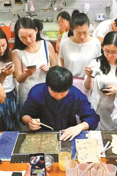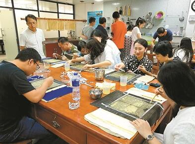 古籍修復技術(shù)班學員在學習修復技術(shù)。