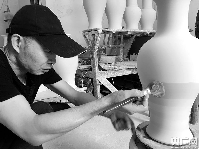 王曉峰:每道工序都不能大意,還要有點(diǎn)運(yùn)氣,突然間天上飄來一朵云,氣里或者是哪里落了一點(diǎn)鐵質(zhì)在上面,你沒辦法。所以我們景德鎮(zhèn)傳統(tǒng)藝人里邊有一句老話,泥塑火燒的東西誰能保得到,萬里無云是很難的事情。但是我個(gè)人覺得可能我們就得做萬里無云的東西。