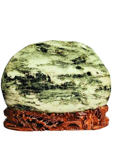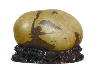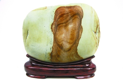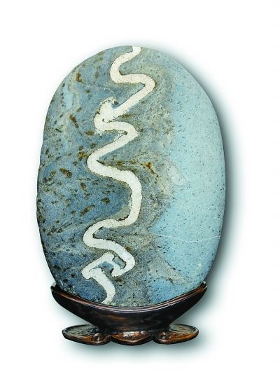金沙江卵石的種類繁多,主要有芙蓉石、墨畫石、油畫石、龜紋石、螺鈿石、松花石、丹彩石、牧羊石、金剛石、燙畫石、彩蠟石、金沙彩等。這些石頭到底有多好,水富縣的石友們總結出十大美——天然美、色彩美、線條美、石質美、形象美、裝飾美、朦朧美、含蓄美、空靈美、意境美。如果沒有江水長年累月的沖刷和搬運,也就不會形成這么多美麗的石頭。水富縣奇石辦多次組織當地的石商參加全國石展,幾年來,捧回特等獎一枚,金獎185枚,銀獎420枚,優(yōu)秀獎600枚。好像是在夸自己,曹會長說得有些臉紅,用手拍打起石頭來。在一旁的老伴兒說,老曹一高興就愛拍石頭,說石頭能聽懂他的話。這倒讓我想起著名美學家王朝聞贊美奇石的一首詩:“石居人外,人在石中。相擊相和,創(chuàng)造對方。”