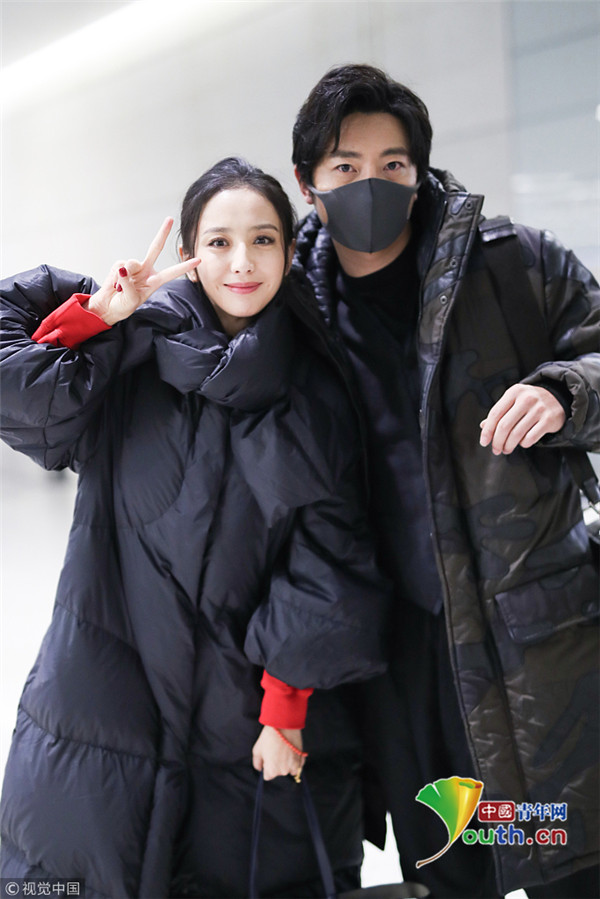 佟麗婭郭京飛賣萌合影 個(gè)性羽絨服俏皮減齡