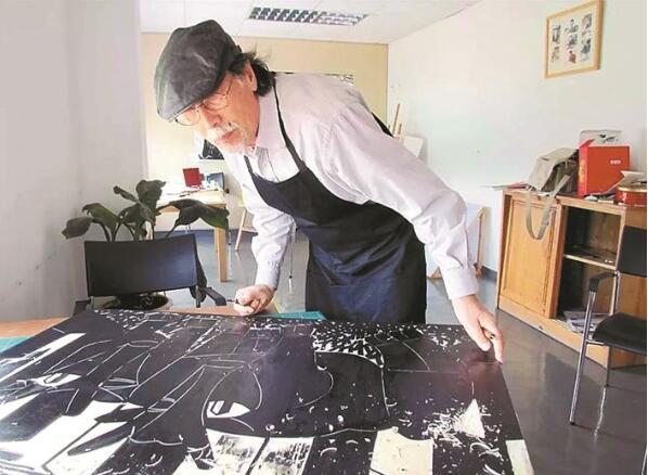 除了熱愛版畫,廣軍也對(duì)油畫、國畫乃至雕塑都多有涉獵,生平的第一個(gè)展覽是油畫展覽。他說,要將每一個(gè)畫種的本體語言發(fā)揮到極致,“我畫油畫一定不是畫照片,要用油畫的語言,如果像照片,那還要油畫干嘛呢?!?/p>