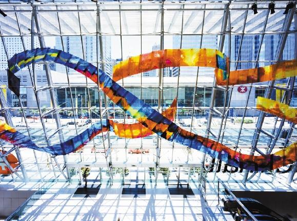 ▲盛姍姍在香港國(guó)際金融中心二期(IFC)的作品《舞動(dòng)的絲帶》。 (受訪者供圖)