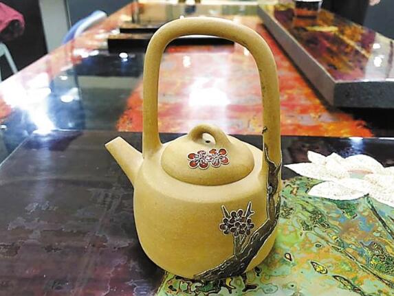 ▲梅花繞蔓生掐絲景泰藍(lán)紫砂手作壺。