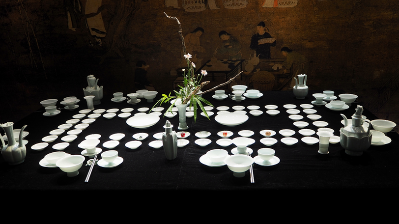 開幕式前,與會領導和嘉賓一同觀看了本次展覽中展出的展品,并饒有興致地觀看了瓷樂表演和非物質(zhì)文化遺產(chǎn)傳承人制瓷技藝表演。