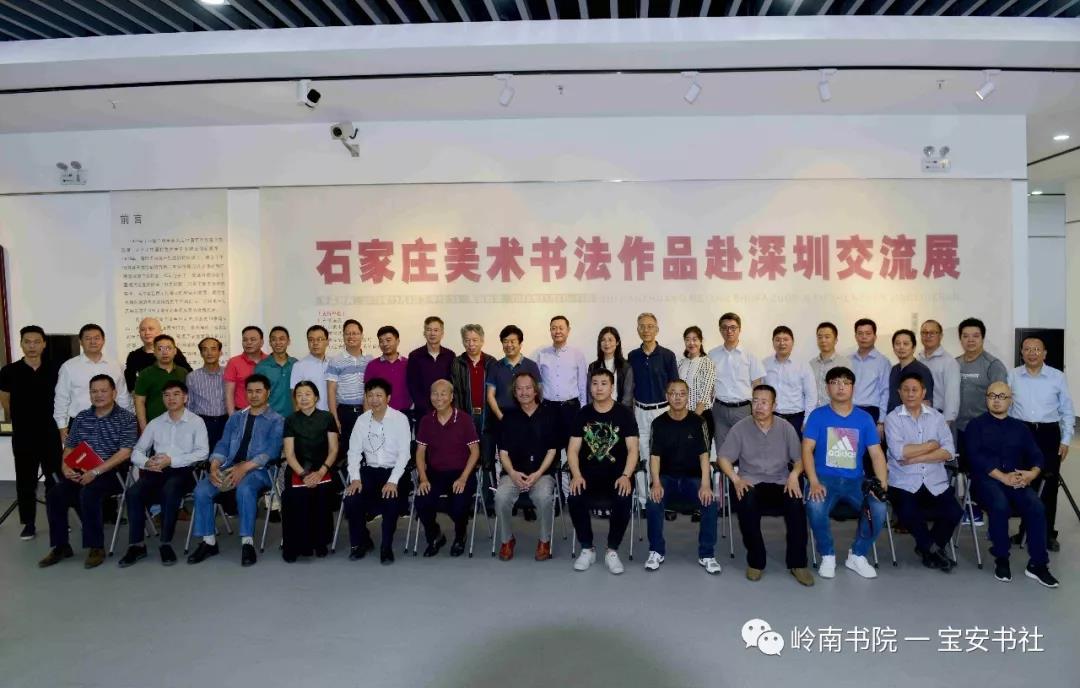 石家莊市與深圳市美術書法界的藝術家與參加開幕式的領導和嘉賓合影,石家莊美術書法作品赴深圳交流展成功開幕。