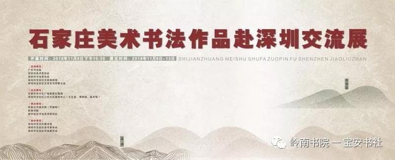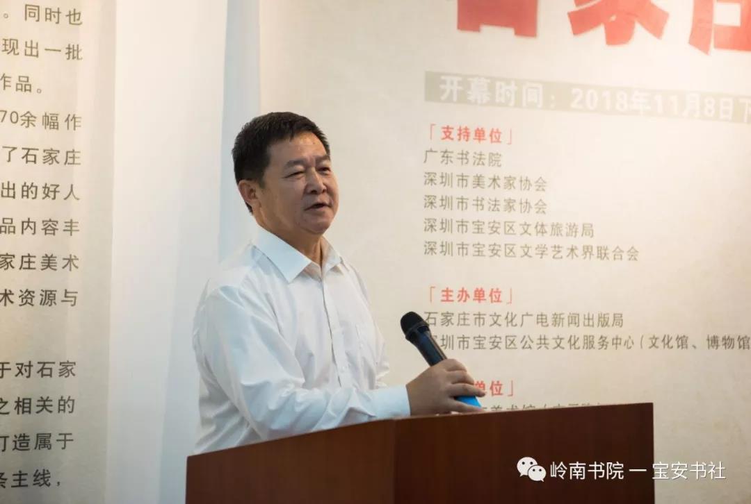 2018年11月8日下午15:00,由石家莊市文化廣電新聞出版局、深圳市寶安區(qū)公共文化服務中心(文化館、博物館、美術館)主辦,石家莊市美術館(市畫院)、嶺南書院、深圳寶安書法藝術研究社承辦,深圳市寶安區(qū)圖書館、寶安區(qū)美協(xié)、寶安區(qū)書協(xié)協(xié)辦并得到深圳市書法家協(xié)會、美術家協(xié)會、寶安區(qū)文體旅游局、寶安區(qū)文聯(lián)的大力支的 “ 石家莊美術書法作品赴深圳交流展 ” 在深圳市寶安區(qū)圖書館負一樓展廳隆重開幕——