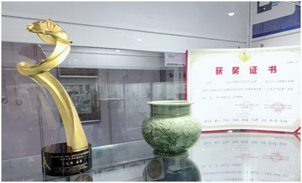 現(xiàn)場,這位陶瓷世家的年青一代為記者介紹了本次冬季文博會(huì)中帶來的象征耀瓷的不同時(shí)期,不同風(fēng)格的多種器件,包括耀瓷刻花蓮荷紋佛經(jīng)缽、紅底玉縷耀瓷刻花飛龍寶塔尊、耀瓷刻花牡丹紋方肩梅瓶等陜西耀州窯代表性作品,也各具不同藝術(shù)風(fēng)格與特色。