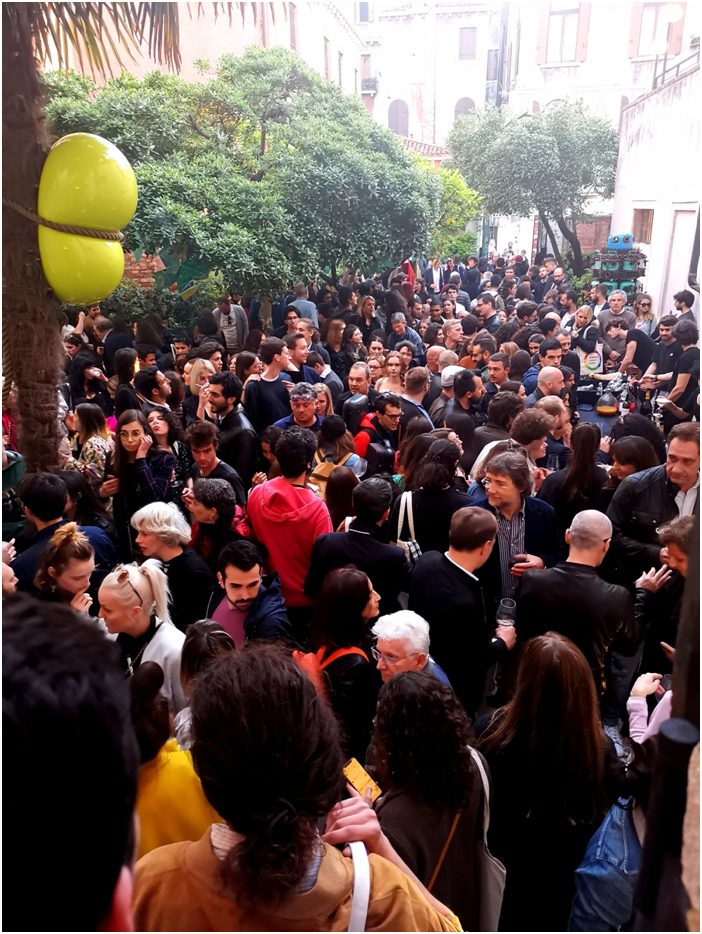 本屆威尼斯藝術(shù)雙年展覽藝術(shù)總監(jiān)為拉夫?魯戈夫(Ralph Rugoff),展覽名為“愿你生活在有趣的時(shí)代"(May You Live in Interesting Times)。全球藝術(shù)事務(wù)基金會(huì),是荷蘭非營利組織,負(fù)責(zé)歐洲文化中心(European Cultural Centre)在莫拉宮和本博宮等五個(gè)主要展館主辦的大型國際展,邀請(qǐng)了世界各地優(yōu)秀藝術(shù)家參展,展覽現(xiàn)場人山人海,人流量大大超過以往,參觀者大多是來自世界各地藝術(shù)家與藝術(shù)愛好者、藏家、畫廊、策展人、及藝術(shù)機(jī)構(gòu)等。