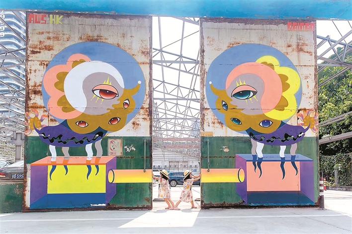 在城市公共空間中,涂鴉藝術(shù)不僅是一種重要的人文景觀,同時還能給人一種視覺享受,使單一的生活變得富有色彩。來自中國香港的全職藝術(shù)家彭怡擅長用涂鴉進行故事創(chuàng)作,作品《雙觀》以左右對稱相望的停車場守護神的形象感染車主與行人,傳達平穩(wěn)冷靜的力量。同樣來自中國香港的涂鴉藝術(shù)家曾昭昶,利用文字涂鴉作品的視覺誤差,嘗試突破停車格的物理范圍,將平面轉(zhuǎn)為立體,帶來作品《內(nèi)&外》。
