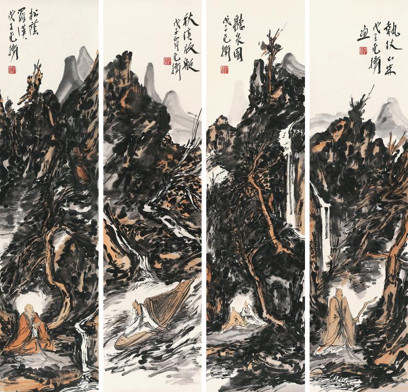作者:范揚(yáng) 作品名稱:山水人物四屏