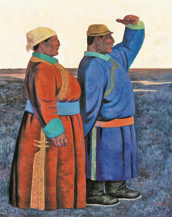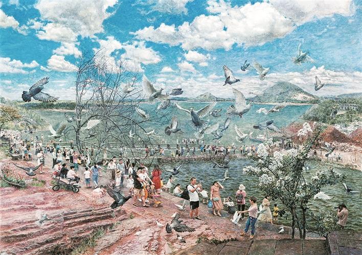 頡元芳的《遠方》表現(xiàn)了內蒙古西北草原民族的人文情感和真實的生活狀態(tài);向園的《夏風》運用浪漫主義和象征主義的創(chuàng)作手法,讓我們回到一種自然、安寧、和諧的畫境之中;奚忠恕的《天路》,讓我們直面感受到面對“最美奮斗者”,用畫筆為他們點贊;吳登軍的《遺失的世界系列——三十六》呈現(xiàn)了他對環(huán)境問題的思考。