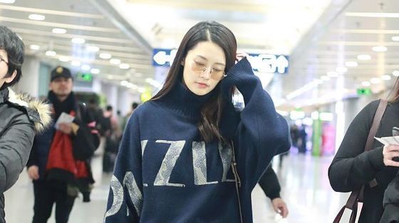 李沁高領(lǐng)毛衣 戴茶色墨鏡溫暖時(shí)尚