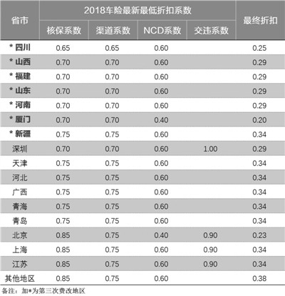 四川地區(qū)自主核保系數(shù)和自主渠道系數(shù)調整為0.65至1.15;山西、福建、山東、河南、廈門等地,自主核保系數(shù)和自主渠道系數(shù)調整范圍均為0.7至1.15;新疆地區(qū)自主核保系數(shù)和自主渠道系數(shù)調整范圍均為0.75至1.15。