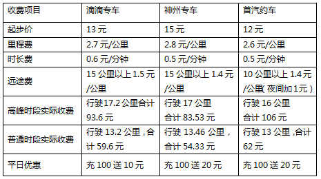 從各家平臺(tái)的價(jià)格列表來看,同樣選擇20萬級(jí)別專車,滴滴起步價(jià)為13元,普通時(shí)段里程費(fèi)為2.7元/公里,時(shí)長費(fèi)為0.6元/分鐘,神州起步價(jià)為15元,普通時(shí)段里程費(fèi)為2.8元/公里,時(shí)長費(fèi)為0.5元/分鐘,首汽起步價(jià)及里程費(fèi)分別為12元與2 .6元/公里,在普通白天時(shí)段綜合對(duì)比,這里三家都沒有呈現(xiàn)特別突出的價(jià)格優(yōu)勢(shì)。