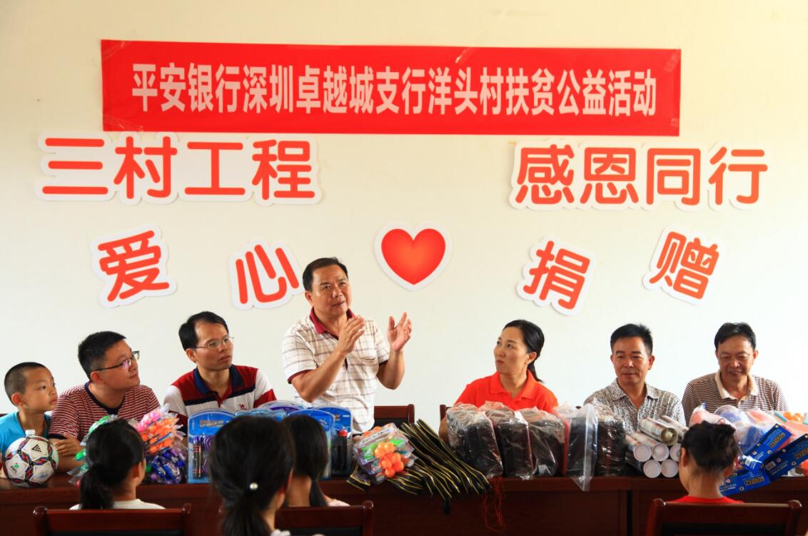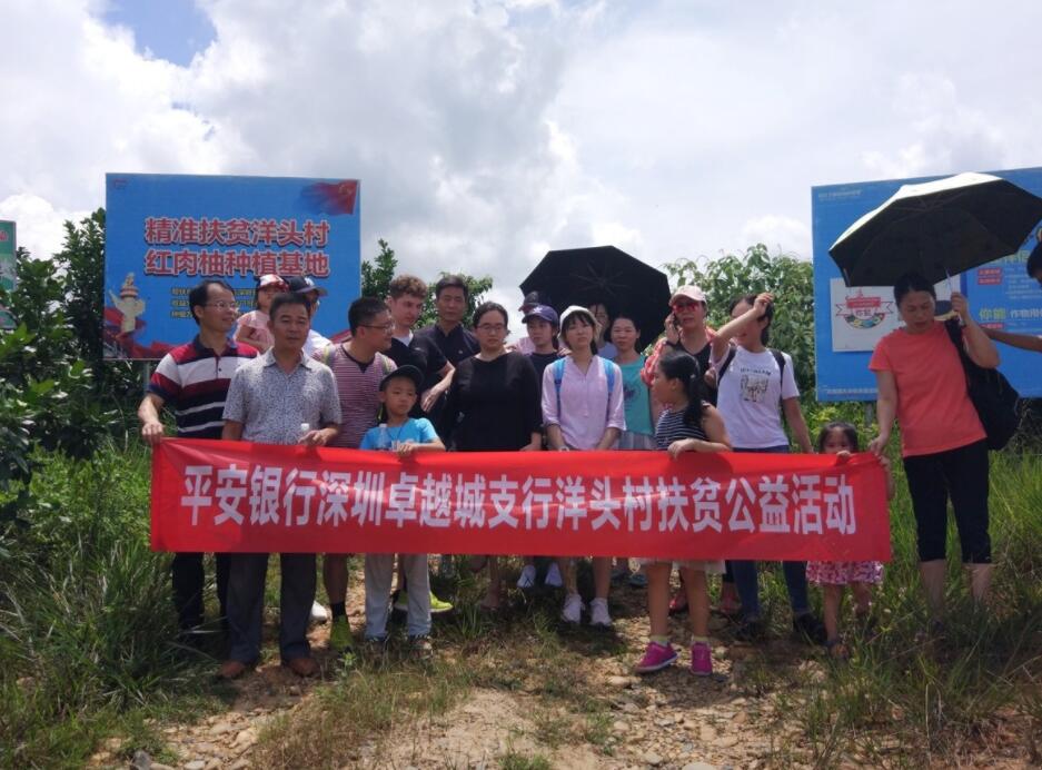 深圳新聞網訊 8月19日上午,為響應平安集團“三村工程”建設和平安銀行總、分行黨委關于扶貧工作的號召,踐行社會責任,平安銀行深圳卓越城支行客戶、員工一行25人前往該行對口扶貧村紫金縣龍窩鎮(zhèn)洋頭村開展了扶貧公益活動。