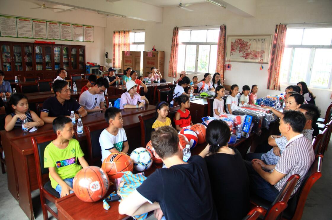 隨后,在村主任的帶領下,大家來到了洋頭小學,參觀了小學的教室、操場等教學設施,與校領導及部分學生進行了交流,并向學校捐贈了籃球、足球、排球、跳繩、羽毛球、乒乓球拍、拳靶、拳套等體育教學用品。這些體育用品受到師生們的熱烈歡迎,一些好奇的同學還當場穿戴上嶄新的拳擊手套為大家“表演”了一番。學?;顒咏Y束后,大家又參觀了該行扶貧生產種植基地——柚子園,園內柚子碩果累累、長勢喜人,大家紛紛拍照留念。