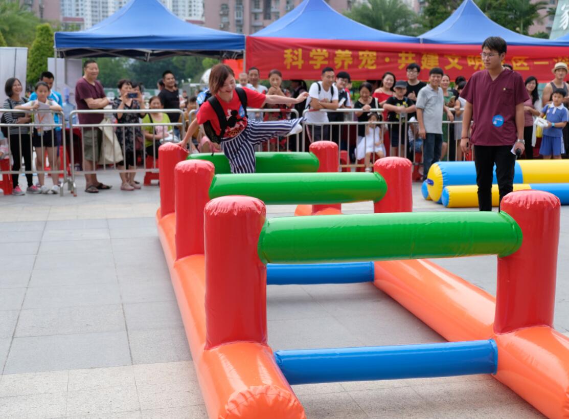 記者在現(xiàn)場(chǎng)看到,運(yùn)動(dòng)會(huì)由汪星人“翻山越嶺”障礙物通關(guān)和喵星人“萌主起駕”鏟屎官闖關(guān)兩個(gè)項(xiàng)目組成,比賽競(jìng)爭(zhēng)激烈趣味無(wú)窮,吸引了社區(qū)鄰里參與互動(dòng),活動(dòng)氣氛歡樂(lè)無(wú)邊。此次活動(dòng)既為社區(qū)帶來(lái)一場(chǎng)別開(kāi)生面的趣味活動(dòng),又為社區(qū)居民宣傳了科學(xué)養(yǎng)寵的相關(guān)知識(shí),倡導(dǎo)文明養(yǎng)寵和諧社區(qū)的正能量?;顒?dòng)現(xiàn)場(chǎng)處處歡聲笑語(yǔ),社區(qū)居民與小寵物們共享歡樂(lè)。