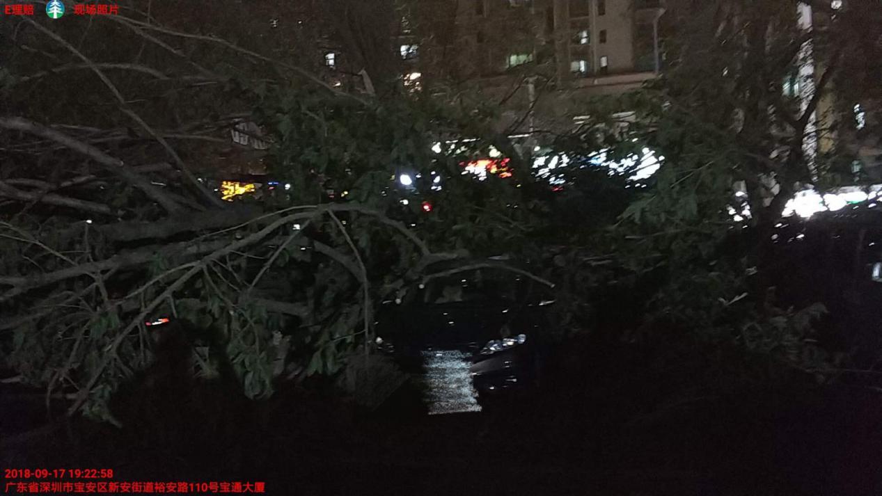 坐標寶安,17日晚,95589接到客戶報案車輛被大樹壓砸,接到報案后查勘員3分鐘內聯(lián)系客戶,指引理賠手續(xù)。15分鐘內到達現(xiàn)場。指引客戶到太平財險合作車行進行維修。