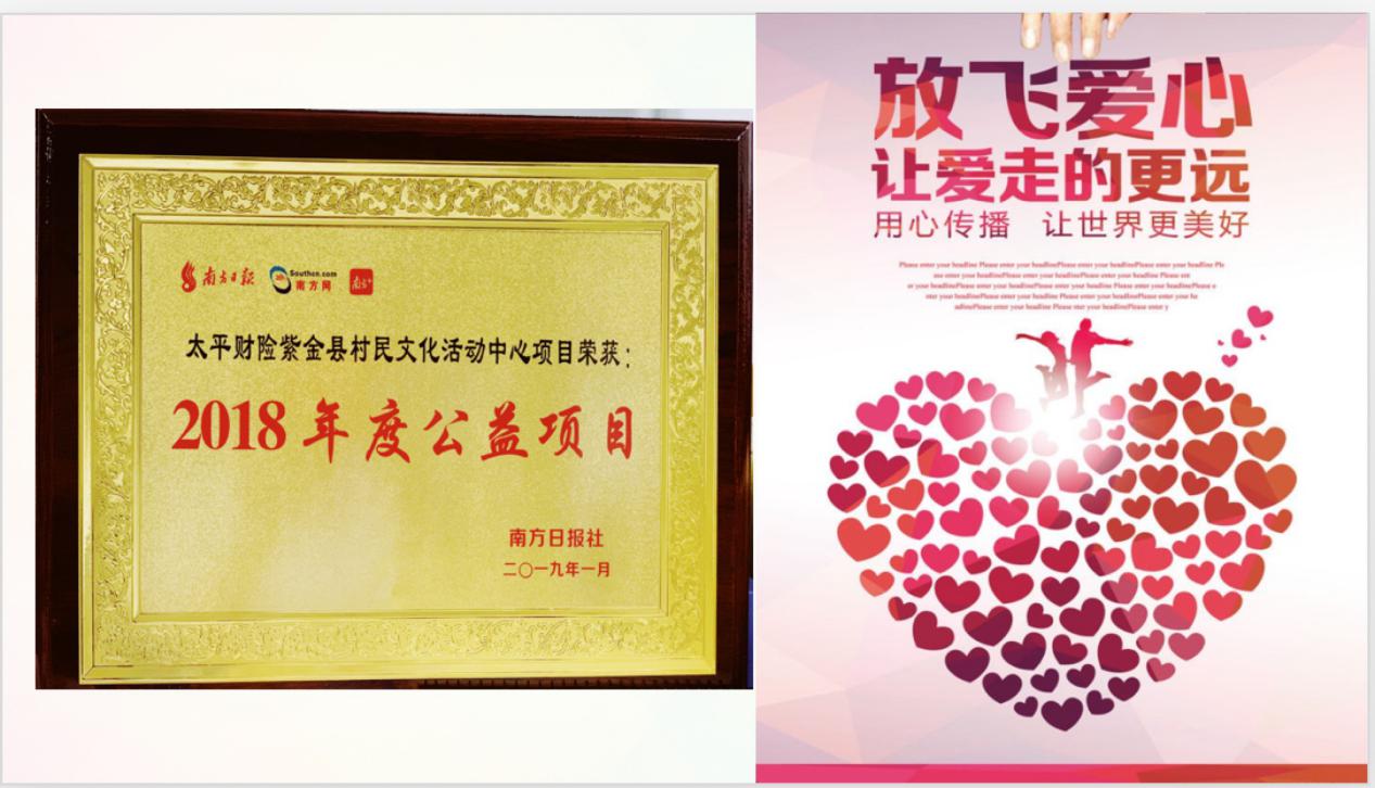太平財產(chǎn)保險有限公司深圳分公司于2017年捐助紫金縣竹塘村村民文化中心工程,獲得了公益項目獎。太平財險負責(zé)人表示,在集團“共享太平”的旗幟下,深圳分公司將繼續(xù)服務(wù)實體經(jīng)濟,關(guān)注公益活動,助力鄉(xiāng)村振興,有力落實央企責(zé)任。