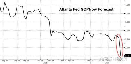 但最嚴(yán)重的下調(diào)來自亞特蘭大聯(lián)邦儲(chǔ)備銀行,在今天的零售數(shù)據(jù)公布后,該行將GDP預(yù)測下調(diào)至1.5%,較2月6日的2.7%下降了近50%。