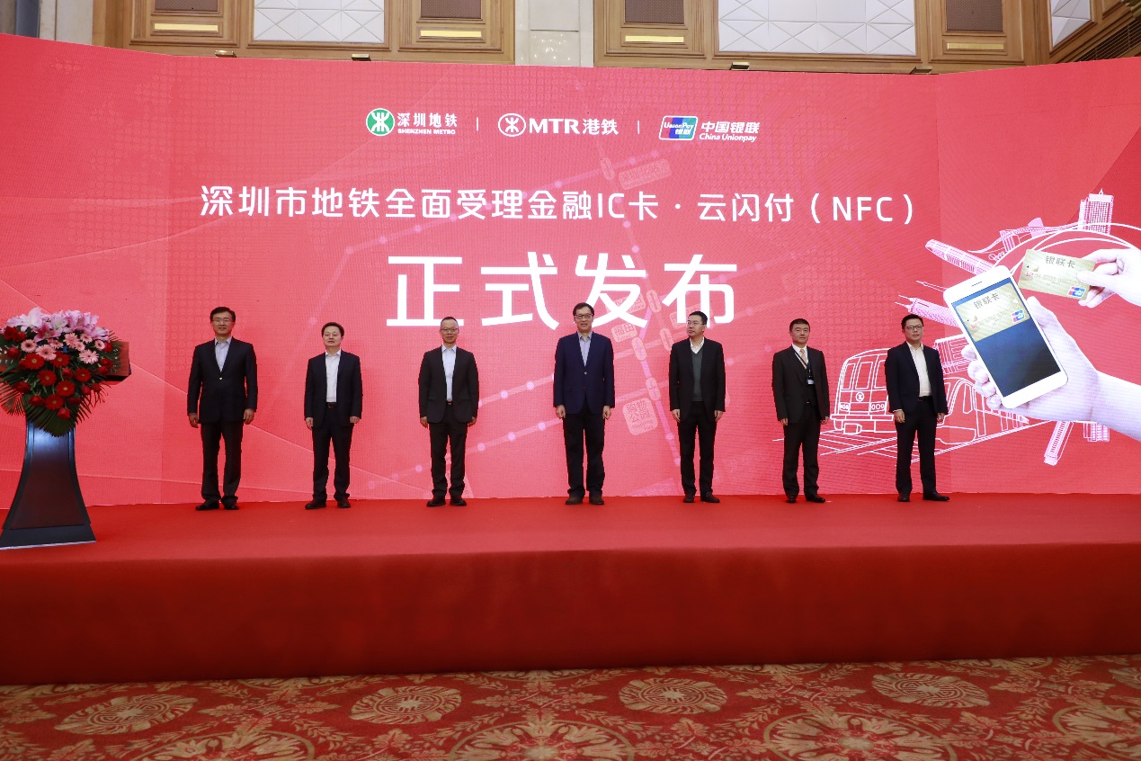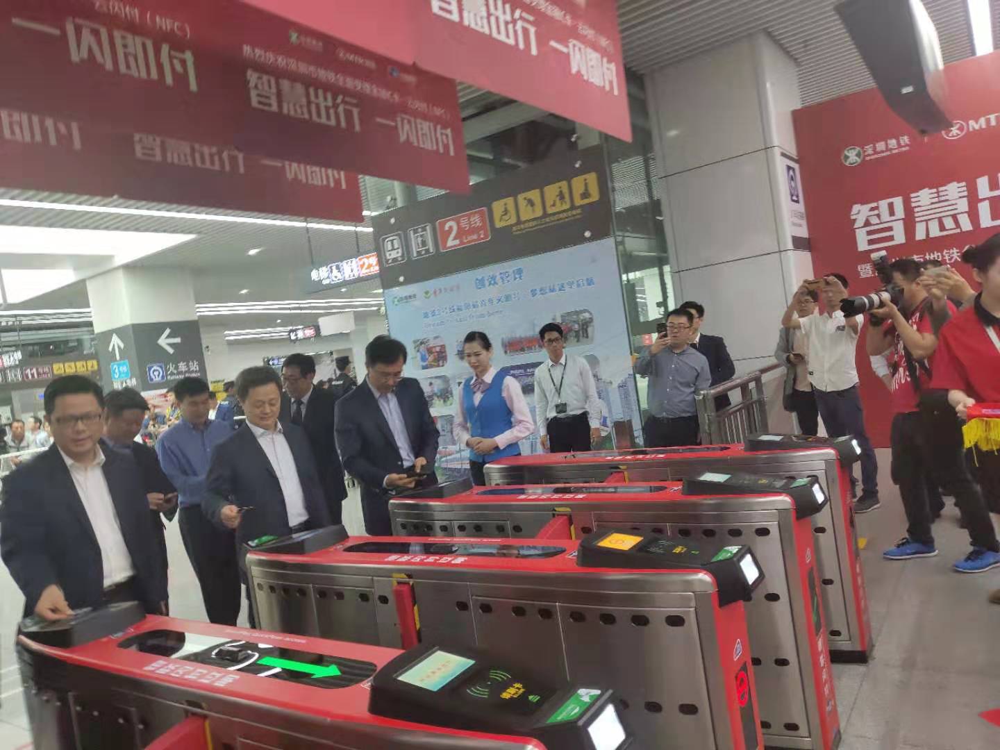 3月1日上午,五洲賓館內舉行了“深圳市地鐵金融IC卡過閘服務”的啟動儀式。中國人民銀行副行長范一飛、深圳市人民政府副市長艾學峰、招商銀行總行副行長劉建軍、中國銀聯(lián)董事長邵伏軍、招商銀行深圳分行行長岳鷹、深圳地鐵董事長辛杰、港鐵(深圳)總經理黃琨暐等相關領導出席了啟動儀式,并共同點亮LED燈幕,宣告深圳市地鐵8條線路的所有車站正式啟用過閘功能。
