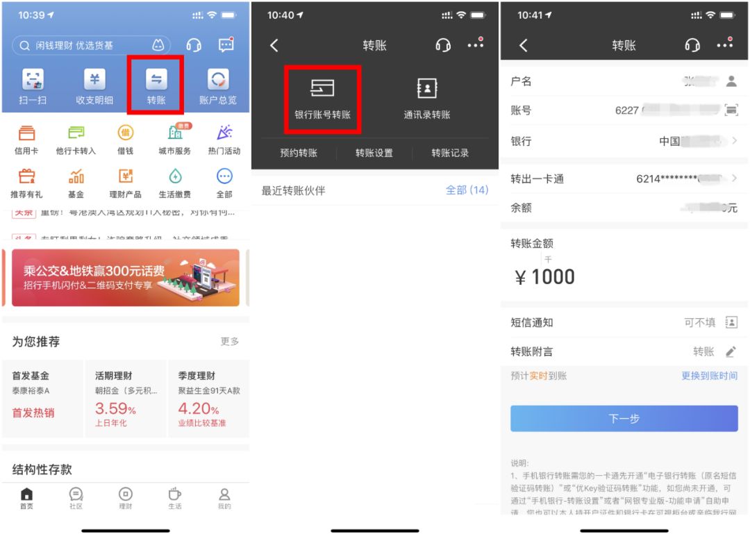 打開(kāi)招商銀行APP,在首頁(yè)點(diǎn)擊“轉(zhuǎn)賬”進(jìn)入轉(zhuǎn)賬頁(yè)面。點(diǎn)擊“銀行賬號(hào)轉(zhuǎn)賬”,根據(jù)提示完成轉(zhuǎn)賬即可完成還款,還可以為親友信用卡免費(fèi)還款。