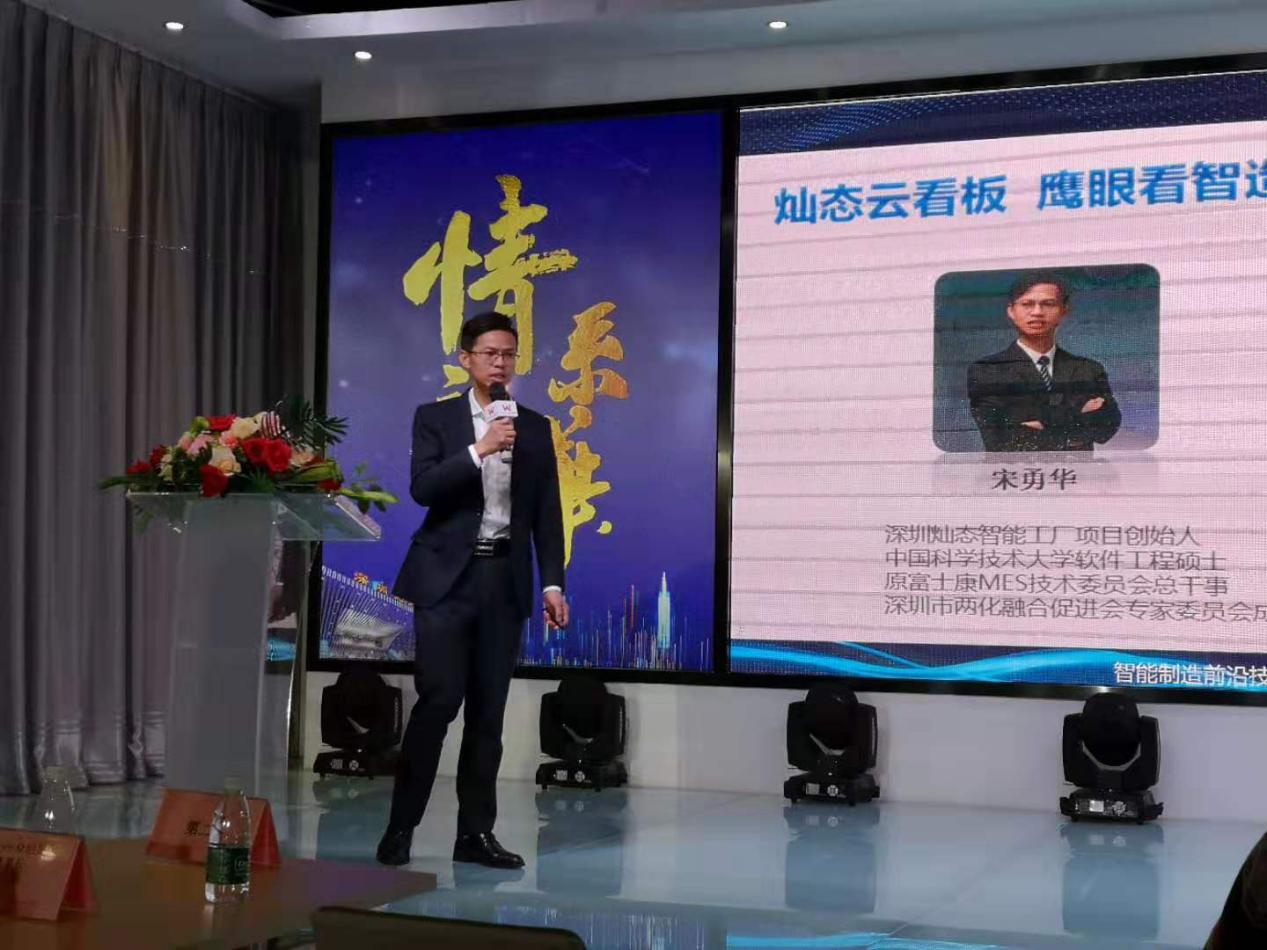 燦態(tài)信息總經理宋勇華是原富士康集團MES技術委員會總干事,他以18年富士康智能制造系統(tǒng)實踐經驗、100多個工廠信息化智能項目沉淀工作經歷介紹了面向中小企業(yè)的智能制造落地方案。其解決方案依據(jù)他原創(chuàng)的三屏看智造理念,即“燦態(tài)鷹眼云看板” SaaS產品,打造符合企業(yè)發(fā)展實際需要和高性價比的智能化平臺,助力中小企業(yè)智能化務實落地。