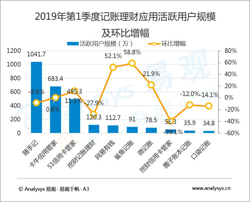 5月24日,知名互聯(lián)網(wǎng)數(shù)據(jù)研究機構易觀 Analysys發(fā)布了2019年第1季度記賬理財行業(yè)報告,數(shù)據(jù)顯示,2019年第1季度,在國內(nèi)記賬類應用中,隨手記以1041.7萬活躍用戶規(guī)模蟬聯(lián)榜首,卡牛信用管家和51信用卡管家分別以683.4萬和495.3萬活躍用戶規(guī)模居行業(yè)二、三位。