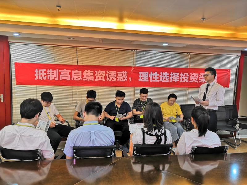 地鐵大廈支行則在深圳市銀服通企業(yè)管理咨詢有限公司舉行金融知識小講座。通過發(fā)放宣傳折頁、懸掛橫幅、現(xiàn)場講解等形式,緊緊圍繞識別抵制高息集資誘惑、做好財務(wù)規(guī)劃、選擇適當(dāng)?shù)漠a(chǎn)品投資理財?shù)戎R進行講解。同時溫馨提示企業(yè)員工在辦理銀行卡、匯款、房貸還款等業(yè)務(wù)時的小竅門,獲企業(yè)員工一致好評。