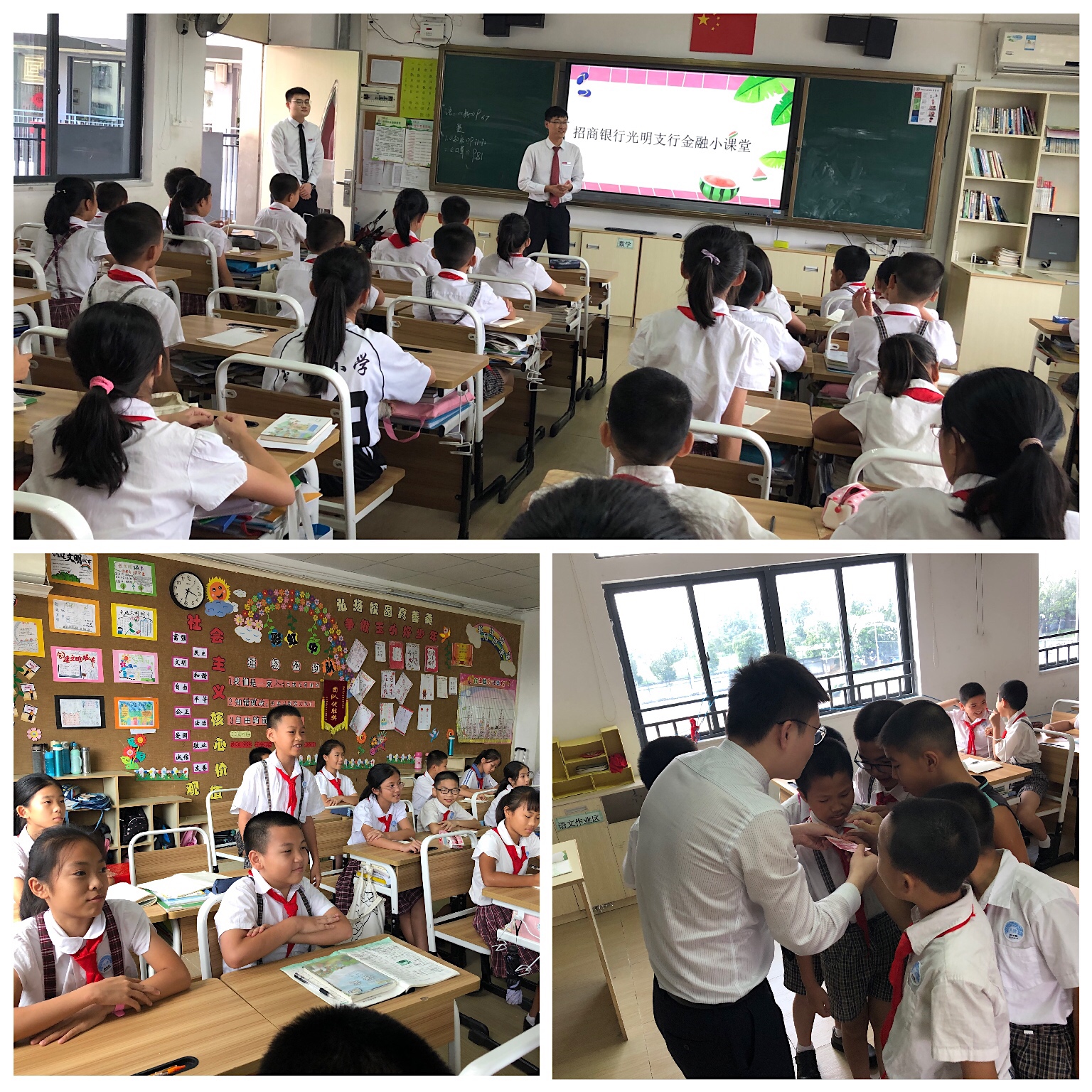 走進學(xué)校:光明支行為光明區(qū)玉律小學(xué)五年級二班的同學(xué)們帶來了一節(jié)趣味十足、干貨滿滿的金融知識分享課。課堂上,宣教專員用詼諧幽默的語言為同學(xué)們講解了銀行卡基礎(chǔ)知識、人民幣辨別真?zhèn)我c以及抵制非法集資的重要性,為同學(xué)們打開了金融世界的大門,“天下沒有免費的午餐”、“天上不會掉餡餅”這些簡單概念已在同學(xué)們腦海中留下印象,勿貪便宜、避免上當(dāng)受騙的警鐘長鳴。