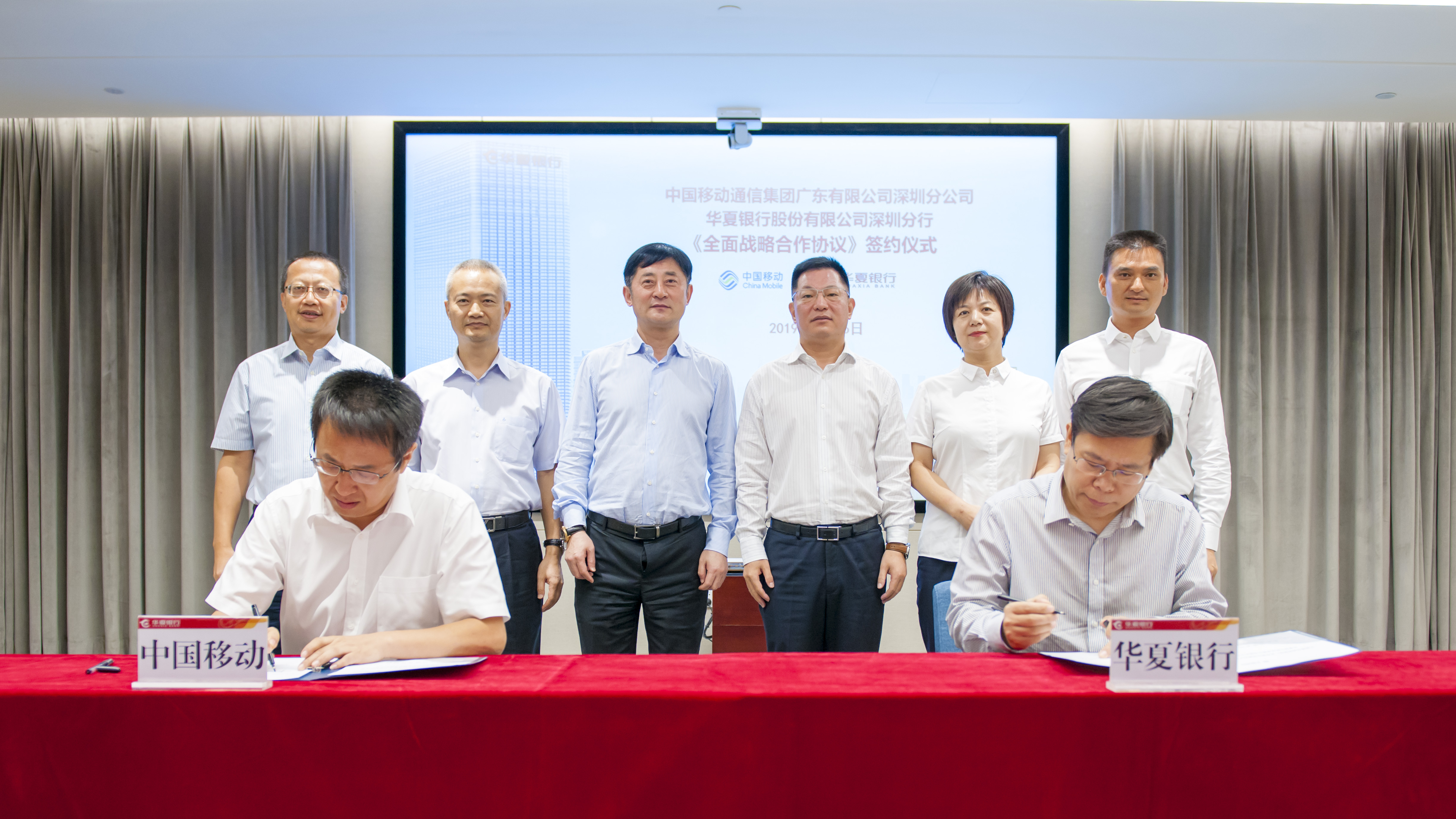 深圳新聞網(wǎng)2019年8月16日訊 近日,華夏銀行深圳分行與中國(guó)移動(dòng)通信集團(tuán)廣東有限公司深圳分公司簽訂《全面戰(zhàn)略合作協(xié)議》,華夏銀行黨委委員、深圳分行黨委書記、行長(zhǎng)陳傳龍與中國(guó)移動(dòng)通信集團(tuán)廣東有限公司黨委委員、副總經(jīng)理祿杰等有關(guān)領(lǐng)導(dǎo)共同見(jiàn)證了協(xié)議簽署。