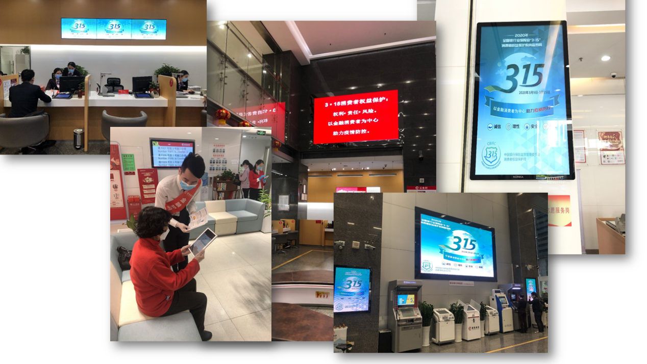 受疫情影響,在今年的3.15宣傳教育活動(dòng)期間,招商銀行深圳分行因時(shí)制宜,充分借助互聯(lián)網(wǎng)媒體渠道,加大線上宣教推廣力度。其中,原創(chuàng)漫畫、視頻等已在中國(guó)銀行業(yè)協(xié)會(huì)、中國(guó)人民銀行深圳市中心支行、招商銀行總行以及信用卡中心的官方微信、微博等各大平臺(tái)競(jìng)相上線,獲得了消費(fèi)者的廣泛好評(píng)。同時(shí),在手機(jī)銀行 App網(wǎng)點(diǎn)線上店開(kāi)辟“消保有招”3.15專欄,不斷開(kāi)創(chuàng)新的宣傳場(chǎng)景和消費(fèi)者觸點(diǎn)。結(jié)合電臺(tái)廣播交通頻率1062、新聞898、音樂(lè)971等傳統(tǒng)媒體平臺(tái)在早晚高峰期循環(huán)播放活動(dòng)主題,以短平快、覆蓋廣的方式大力推動(dòng)金融宣教工作,進(jìn)一步擴(kuò)充宣傳渠道和受眾面。同時(shí),以營(yíng)業(yè)廳為陣地,通過(guò)跑屏、電子海報(bào)機(jī)、電視等多媒體設(shè)備播放宣傳素材,多種渠道共同推廣打造立體宣教格局,覆蓋更多消費(fèi)者群體進(jìn)一步增強(qiáng)影響力。