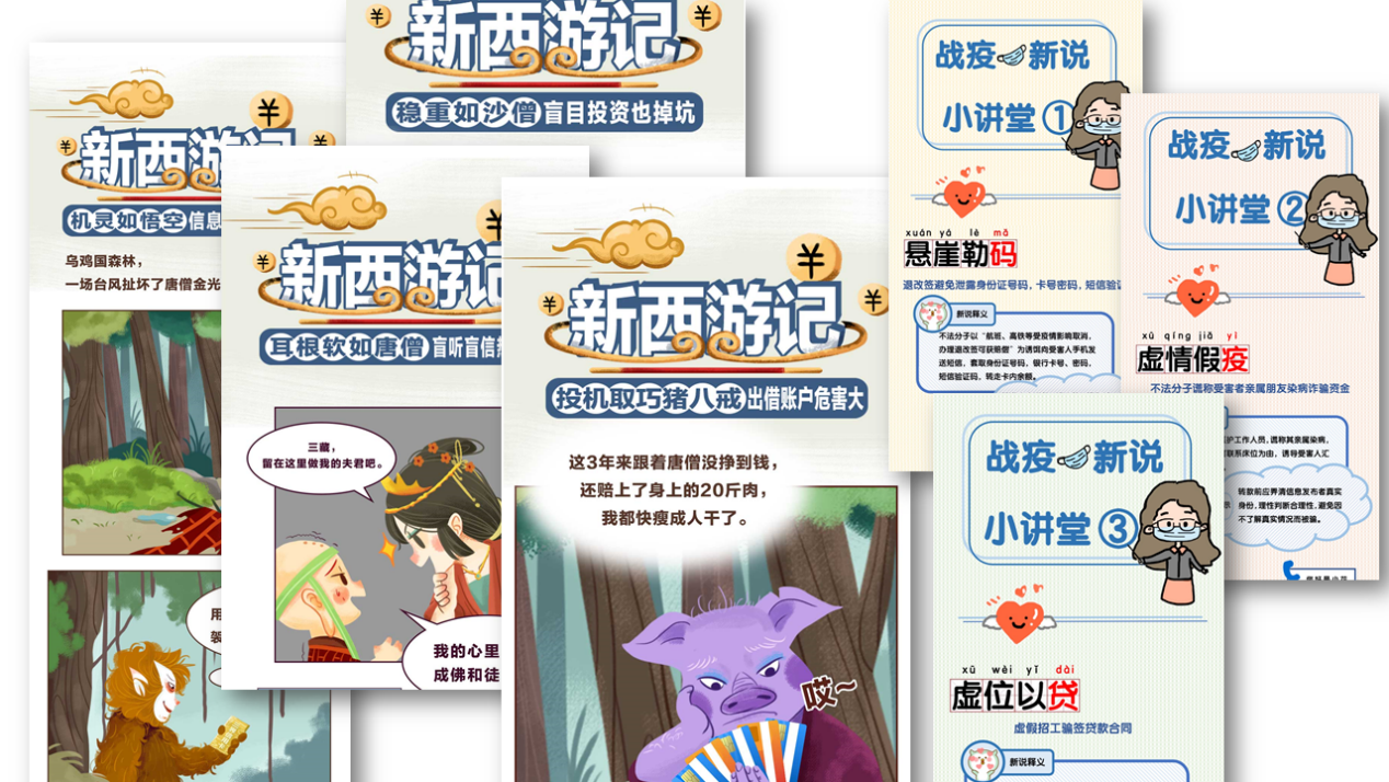 針對(duì)疫情期間頻繁出現(xiàn)電信網(wǎng)絡(luò)詐騙的情況,招商銀行深圳分行迅速反應(yīng),以原創(chuàng)漫畫、小視頻、線上直播及在線互動(dòng)問(wèn)答等新穎形式開(kāi)展抗疫防騙線上宣教,對(duì)不同類型的詐騙套路進(jìn)行揭示和解析,如虛假售賣醫(yī)用口罩、以慈善募捐名義騙取捐款等,及時(shí)對(duì)消費(fèi)者進(jìn)行風(fēng)險(xiǎn)提示。除此之外,還以普及金融消費(fèi)者享有的八項(xiàng)法定權(quán)利、倡導(dǎo)金融消費(fèi)者依法理性維權(quán)、宣傳個(gè)人征信業(yè)務(wù)網(wǎng)上辦理、識(shí)別非法金融廣告等知識(shí)為內(nèi)容,創(chuàng)作貼合時(shí)事、實(shí)用有趣、形式多樣的宣教作品,有效提升了消費(fèi)者在疫情特殊時(shí)期的金融素養(yǎng)。