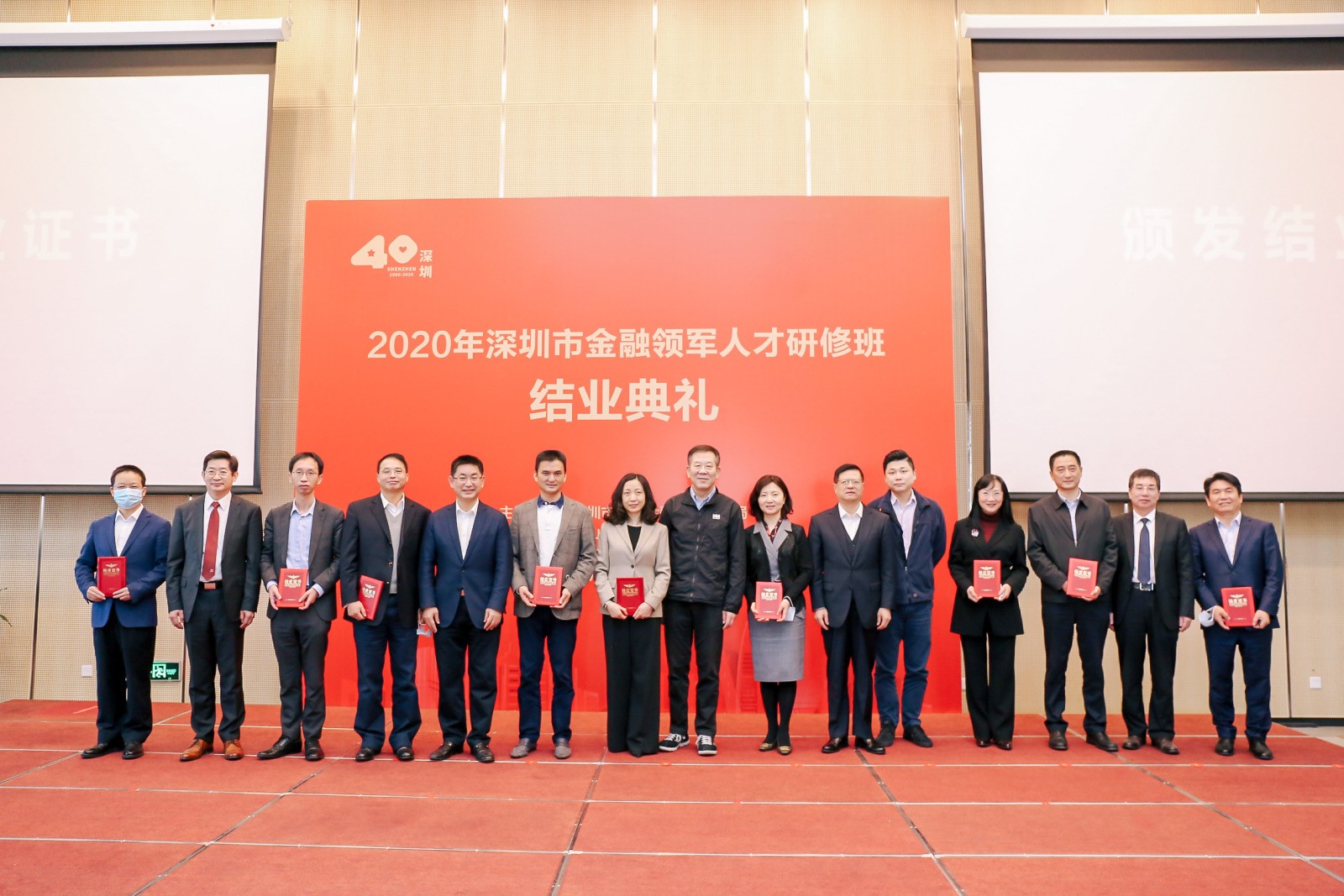平生書記在致辭中表示,2020年是極不平凡的一年,是金融機(jī)構(gòu)積極主動(dòng)作為、彰顯責(zé)任擔(dān)當(dāng)?shù)囊荒?,也是深圳金融業(yè)逆勢(shì)而上,保持平穩(wěn)健康發(fā)展的一年,金融機(jī)構(gòu)對(duì)全市統(tǒng)籌疫情防控和經(jīng)濟(jì)社會(huì)發(fā)展作出了重要貢獻(xiàn),金融業(yè)在全市經(jīng)濟(jì)增長(zhǎng)實(shí)現(xiàn)V形反轉(zhuǎn)、率先翻正中發(fā)揮了“壓艙石”作用,這些成績(jī)來(lái)自每一位金融人才的拼搏奮斗,領(lǐng)軍人才為行業(yè)發(fā)展做出了積極的貢獻(xiàn)。研修班期間,學(xué)員們一起聆聽名家大咖講課、踴躍參加主題論壇、認(rèn)真撰寫調(diào)研報(bào)告,還開展了閉門研討、名企考察、交流互訪等形式多樣的活動(dòng),既豐富了知識(shí)、開闊了眼界,也促進(jìn)了交流、收獲了友誼,總體達(dá)到了預(yù)期效果,為全面實(shí)施“深圳百千萬(wàn)金融人才培養(yǎng)工程”奠定了扎實(shí)基礎(chǔ)。他希望學(xué)員學(xué)思悟踐、學(xué)以致用,緊抓粵港澳大灣區(qū)、先行示范區(qū)“雙區(qū)驅(qū)動(dòng)”和綜合改革試點(diǎn)的重大歷史機(jī)遇,聚焦制約行業(yè)發(fā)展重點(diǎn)難點(diǎn)問題,深入研究、謀篇破題,為深圳金融業(yè)高質(zhì)量發(fā)展做出更大貢獻(xiàn)。