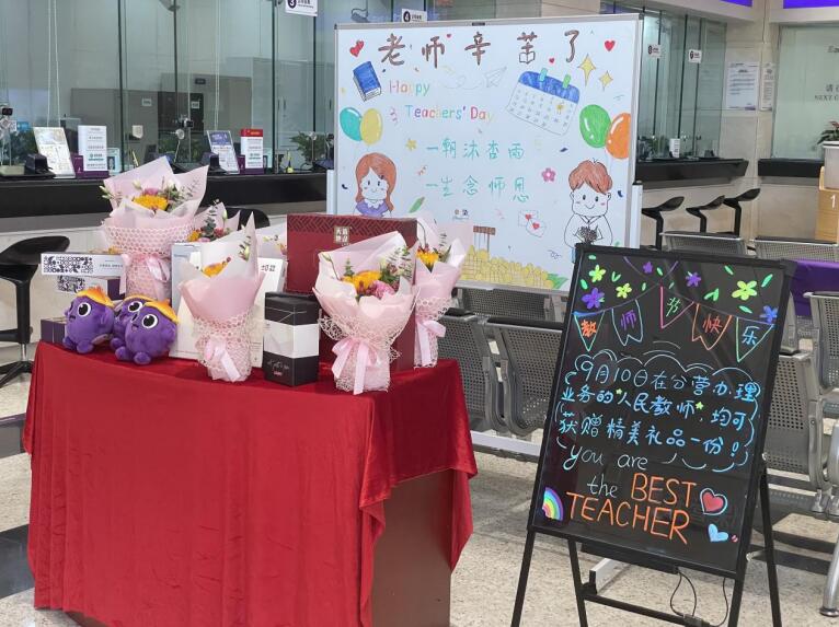 深圳新聞網(wǎng)2021年9月10日訊 (記者 朱琳 通訊員 樓蓉 沈婷)金秋九月,秋高氣爽,為迎接第37個教師節(jié),深圳分行開展“感恩教師節(jié)”系列活動,部分網(wǎng)點通過教師節(jié)專屬活動,為廣大教師客戶送上了節(jié)日的鮮花。9月10日,在深圳分行營業(yè)部辦理業(yè)務(wù)的人民教師均可獲贈精美禮品一份。