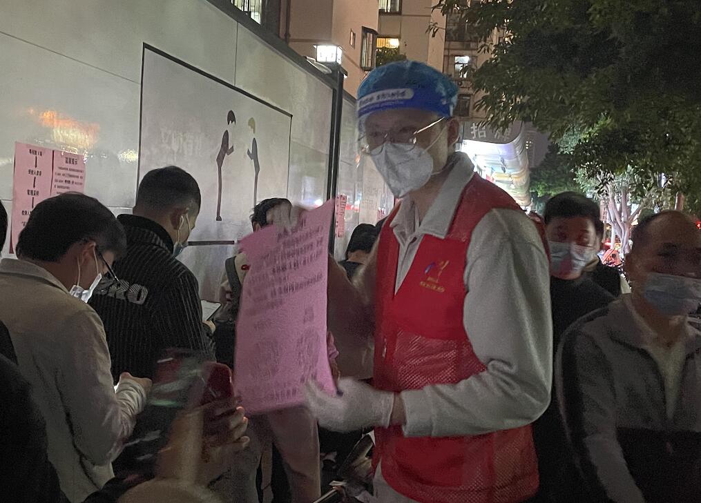 2月18日,青年志愿者們顧不上吃晚飯,一下班就奔赴南園社區(qū)核酸篩查檢測(cè)點(diǎn),與南園社區(qū)的志愿者們一起投入到維護(hù)核酸采集秩序的隊(duì)伍中,一直服務(wù)到深夜。