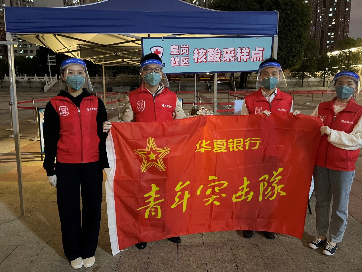 2月18日晚,寒風瑟瑟的夜里,皇崗社區(qū)核酸采樣點還排著長龍。華夏銀行深圳分行的黨員、青年團員迅速集結為“青年突擊隊”,在做好安全防護的基礎上,深入福田街道皇崗文化廣場、高發(fā)城馳廣場核酸采集點,協(xié)助防疫工作組維護現(xiàn)場秩序、身份信息登記等志愿服務工作,幫助社區(qū)提升核酸檢測效率。高新支行儲雨欣耐心地指導一位抱著小孩的阿姨錄入核酸檢測信息,她趕到核酸采樣點已經(jīng)接近晚上8點。“剛剛從支行軋賬下班,雖然有些晚了,但我還是想來?!?/p>