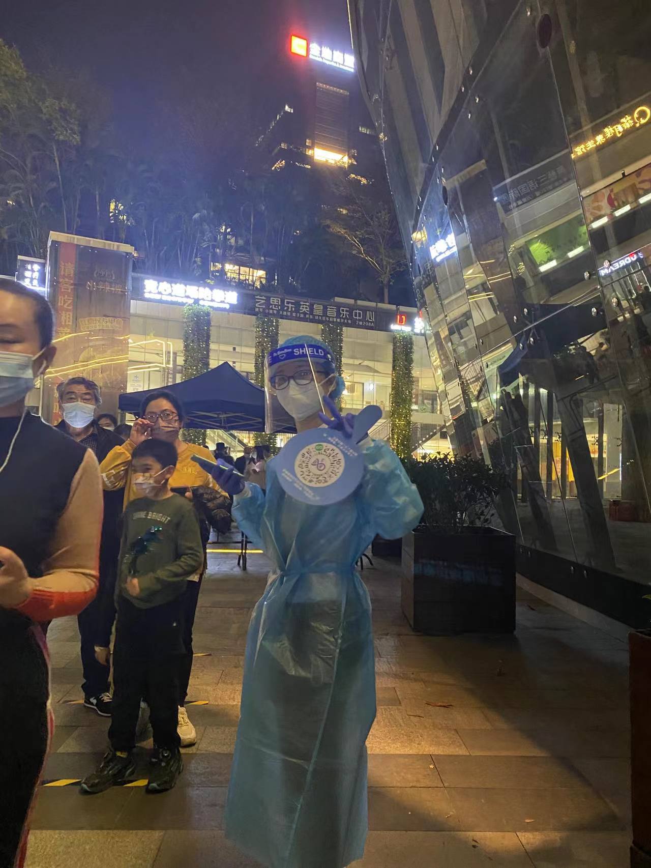 面對本輪疫情的來勢洶洶,新增病例的數(shù)字每天都在持續(xù)增加,許多小區(qū)開始封閉管理。在管控小區(qū)檢測點志愿者奇缺的狀況下,華夏銀行深圳蛇口支行的李宇航迅速報名成為社區(qū)義工。很快,他就穿著防護服,在封閉式管理的小區(qū)內幫助核酸檢測秩序維護、指導粵核酸操作。他還主動承擔檢測物資運送的工作,小朋友們總是跑到圍欄外喊他“大白”。他背對著孩子們,自豪地說:“我是華夏小李!”