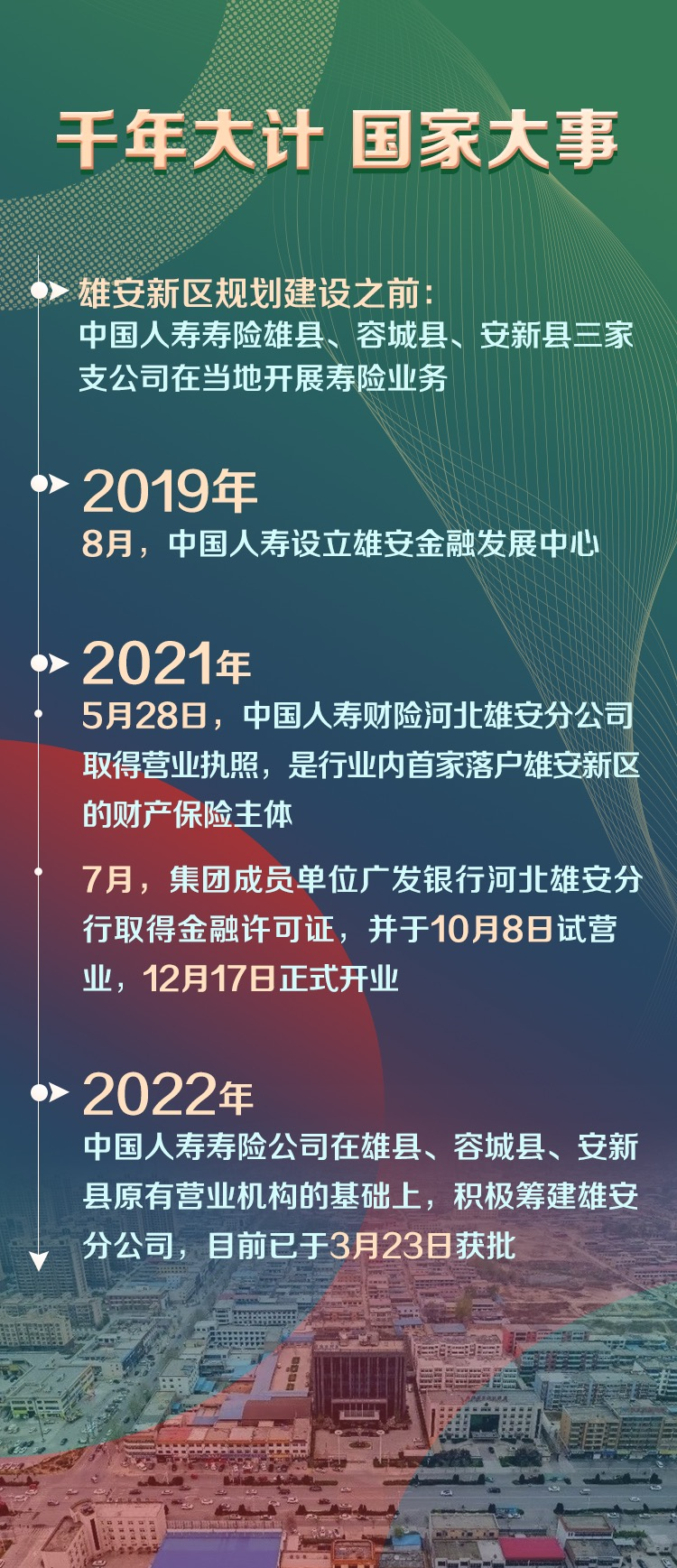 深圳新聞網(wǎng)2022年4月1日訊 設(shè)立雄安新區(qū),對(duì)承接北京非首都功能、探索人口密集地區(qū)優(yōu)化開發(fā)模式、調(diào)整優(yōu)化京津冀空間結(jié)構(gòu)、培育推動(dòng)高質(zhì)量發(fā)展和建設(shè)現(xiàn)代化經(jīng)濟(jì)體系的新引擎具有重大現(xiàn)實(shí)意義和深遠(yuǎn)歷史意義。作為金融央企,中國(guó)人壽緊跟國(guó)家發(fā)展步伐,時(shí)刻保持“趕考”的清醒和堅(jiān)定,在保險(xiǎn)、投資、銀行三大業(yè)務(wù)板塊上協(xié)同發(fā)力,高標(biāo)準(zhǔn)高質(zhì)量服務(wù)雄安新區(qū)建設(shè)。