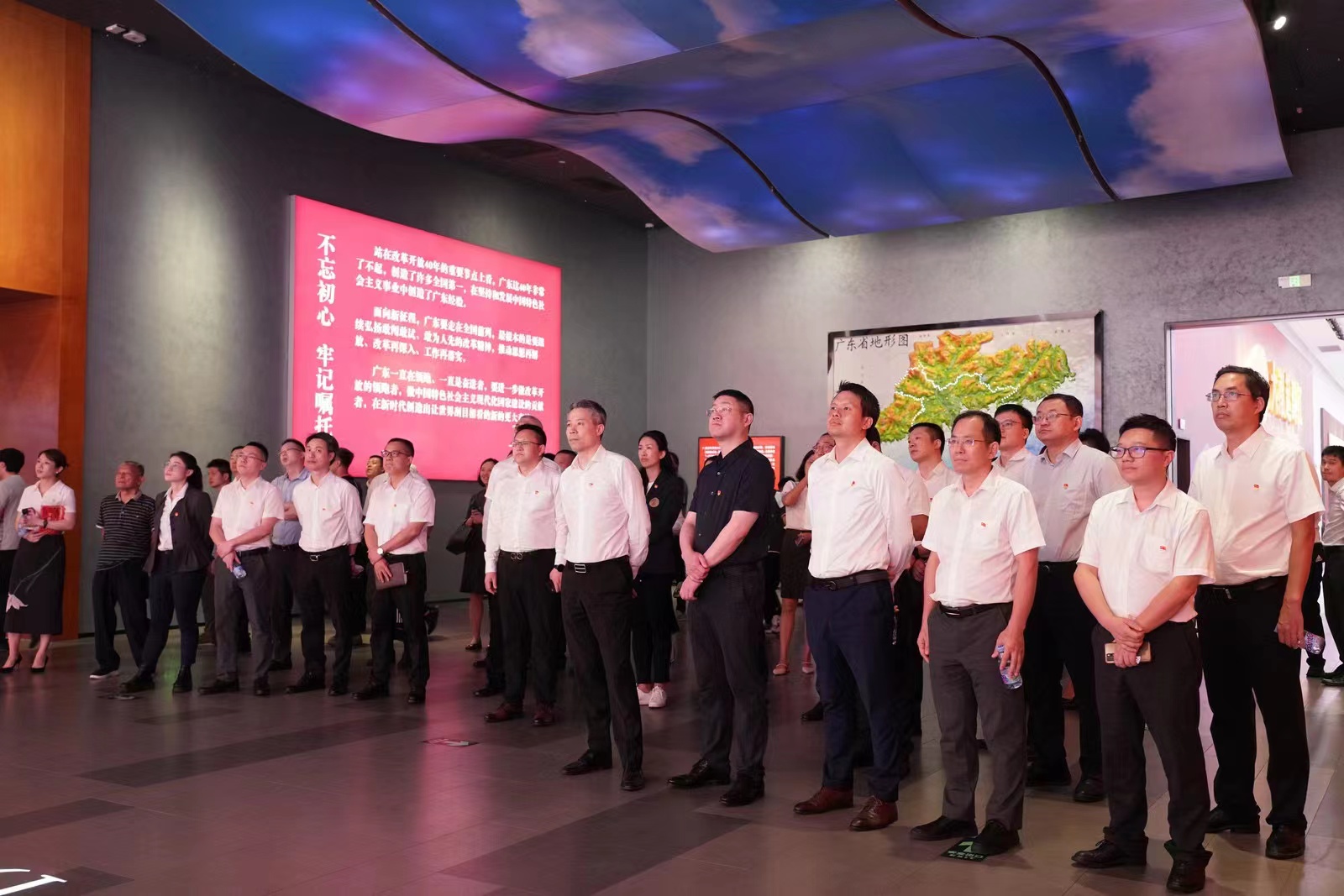 展廳里,大家目睹了從牌坊矮屋到高樓林立、從漁船耕牛到高架高鐵、從貧瘠的土地到國際化大都市的變化,今昔生活強烈對比,歷史場景歷歷再現(xiàn),見證了南粵大地改革開放四十年來的發(fā)展與榮光,全體黨員的驕傲和自豪之情油然而生。