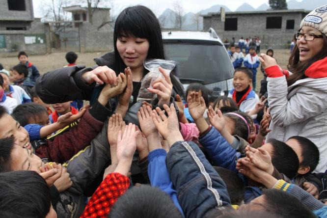 “我始終記得第一次去織金的情景。當(dāng)時,我們從貴陽出發(fā),走了5個小時的盤山公路,2個小時坑坑洼洼的盤山小路才到。難以忘記的是破敗的教室里孩子們黝黑冰冷的小手,鼻子上掛著的兩條‘小蟲’,透著冬日寒風(fēng)的衣服上的破洞。他們半倚在簡陋的桌椅邊直打哆嗦,卻依然因為我們的到來綻放著暖陽般的笑臉?!痹瓘V發(fā)銀行深圳分行副行長駱向東回憶起考察邊遠(yuǎn)村小時的情景,至今仍心疼不已。