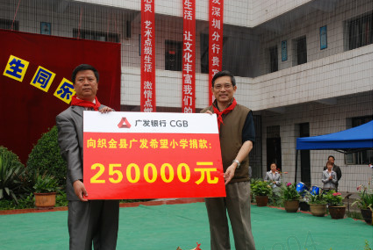 圖:廣發(fā)銀行向希望小學(xué)捐款