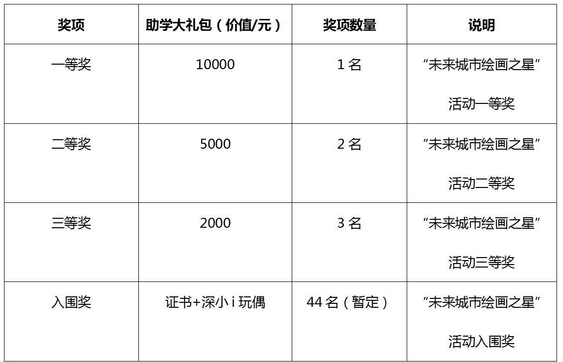 (2)入圍決賽的44名參賽選手將獲得入圍獎(jiǎng)(參賽證書(shū)、深小i玩偶)。