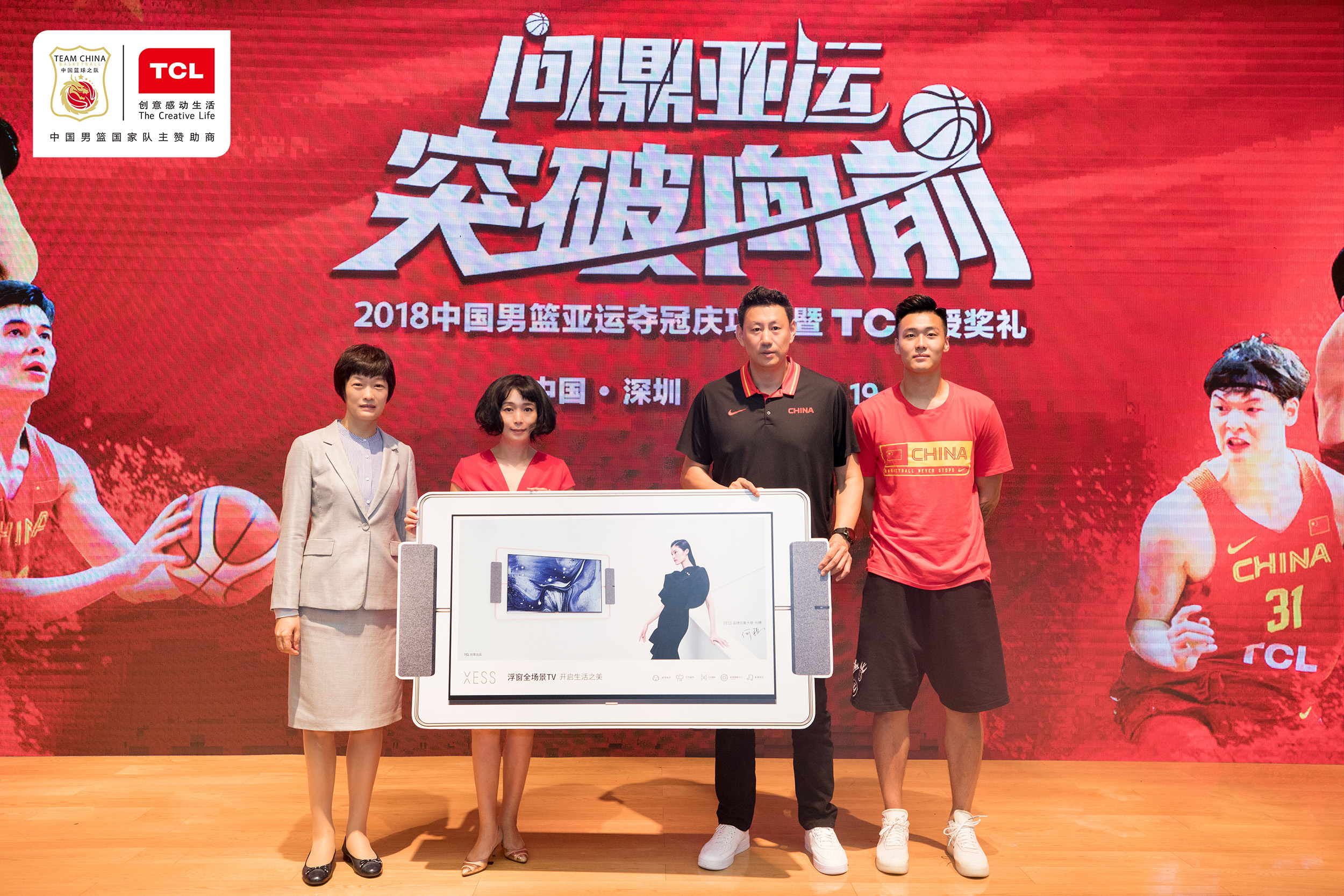 深圳新聞網(wǎng)訊 9月1 9日 , 為表彰中國男籃全體將士在今年賽場(chǎng)上的優(yōu)異表現(xiàn),中國男籃主贊助商TCL在深圳舉辦2018中國男籃慶功會(huì)暨TCL授獎(jiǎng)禮活動(dòng),以高端子品牌X ESS最新產(chǎn)品和現(xiàn)金方式 ,激勵(lì)球隊(duì)繼續(xù) 突破向前 、 再創(chuàng)佳績(jī) 。TCL集團(tuán)首席運(yùn)營官杜娟、T CL集團(tuán)副總裁魏雪 、T CL集團(tuán)品牌管理中心總經(jīng)理張曉光攜手 中國男籃的兩位代表——中國男籃集訓(xùn)紅隊(duì)主教練李楠、隊(duì)員趙睿共同出席,與T CL集團(tuán)產(chǎn)業(yè)領(lǐng)導(dǎo)及 員工代表一起,見證榮耀時(shí)刻。