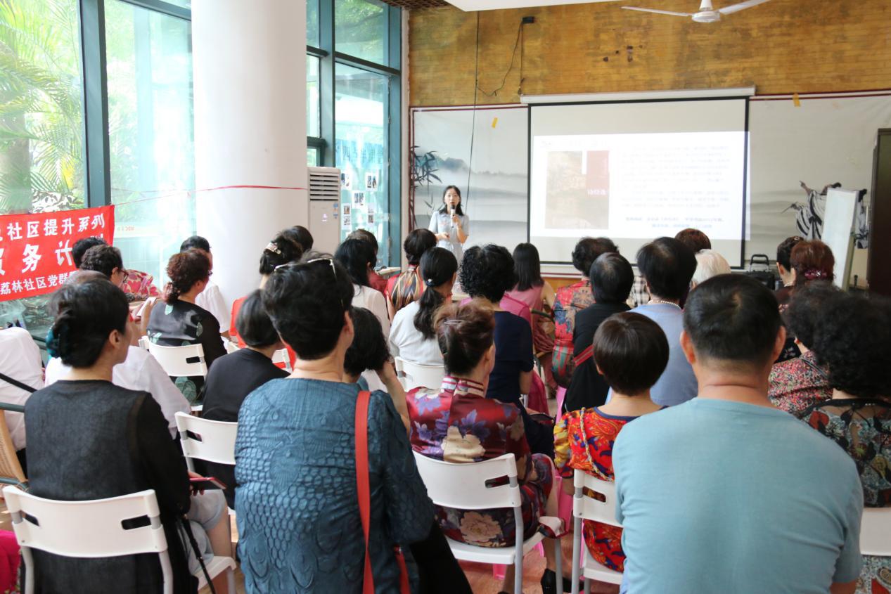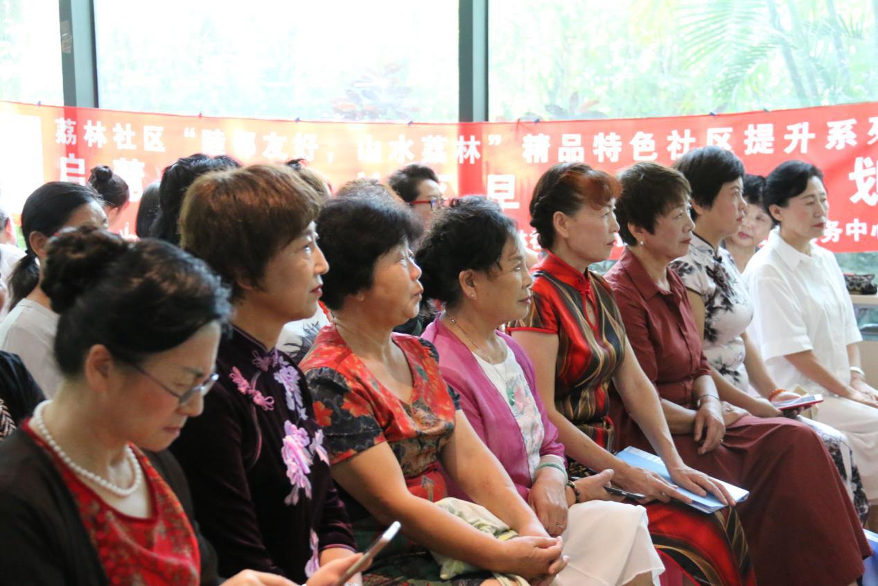 “綠草蒼蒼,白霧茫茫,有位佳人,在水一方。綠草萋萋,白霧迷離,有位佳人,靠水而居......”講座開始,邵洋吟唱起鄧麗君的《在水一方》,引得居民朋友輕聲相和,歌聲悠遠(yuǎn)而綿長。