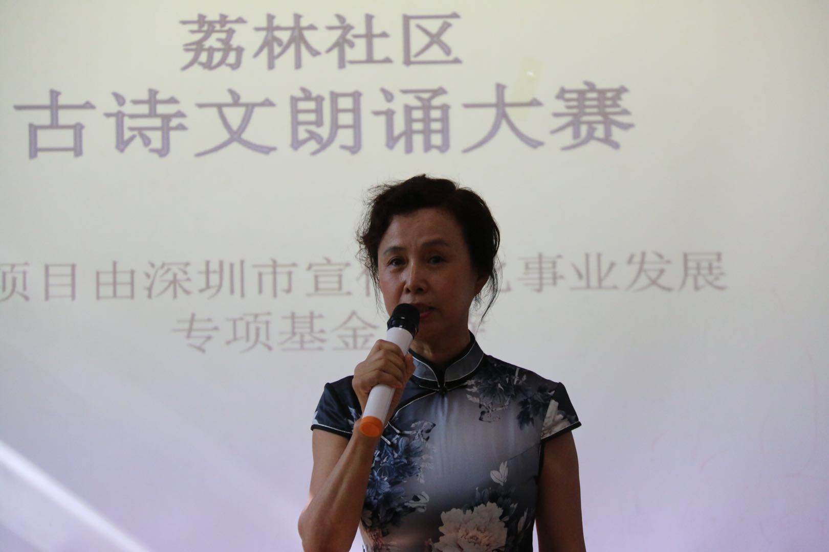 深圳新聞網(wǎng)訊 5月18日下午,由深圳市宣傳文化事業(yè)發(fā)展專 項基金支持的“新時代中華優(yōu)秀傳統(tǒng)文化進社區(qū)”項目第三場活動“古詩詞朗誦大賽”在南山區(qū)南山街道荔林社區(qū)黨群活動中心一樓多功能廳拉開帷幕。本次活動由深圳市壹書文化傳播有限責任公司主辦,荔林社區(qū)協(xié)辦。炎炎夏日阻擋不了居民朋友們的熱情,他們早早地來到了活動現(xiàn)場,對本次比賽充滿了熱切的期待。