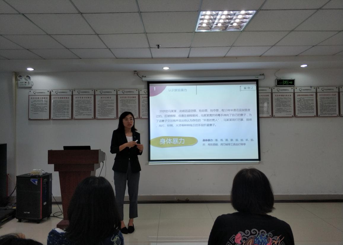 活動(dòng)現(xiàn)場(chǎng),維德法律服務(wù)中心志愿律師劉秀為大家講授以“要愛不要傷害”為主題的反家暴講座。她以當(dāng)下反家暴的熱點(diǎn)與經(jīng)典案例為切入點(diǎn),就如何維護(hù)女性在婚姻家庭中的權(quán)益問(wèn)題與居民和社工展開深入探討。值得一提的是,劉律師還與社區(qū)工作人員一起,以親身體驗(yàn)的方式,復(fù)刻了現(xiàn)實(shí)生活中的法律咨詢現(xiàn)場(chǎng)。